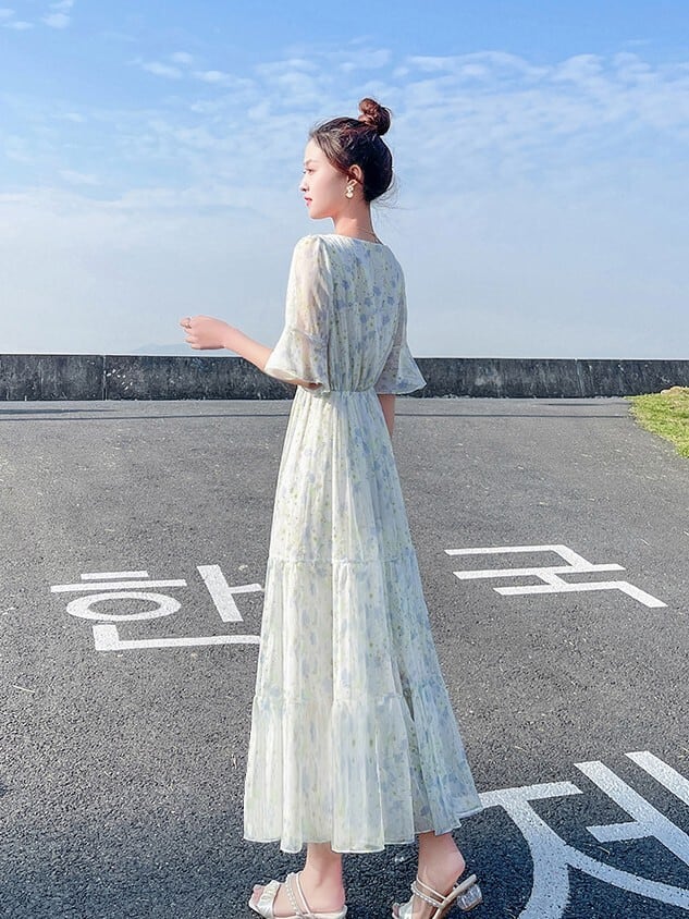 シフォン花柄フリル ワンピース K2205
