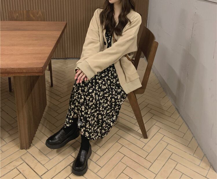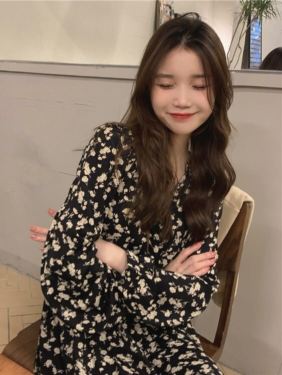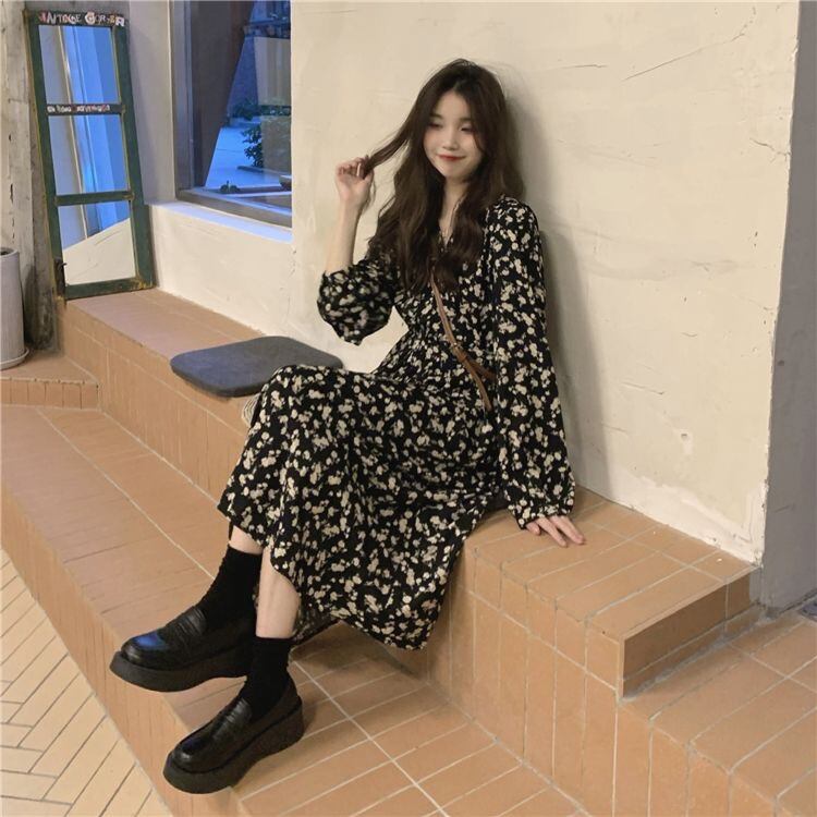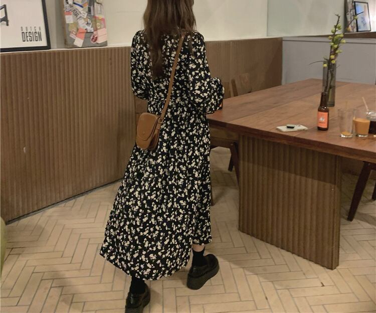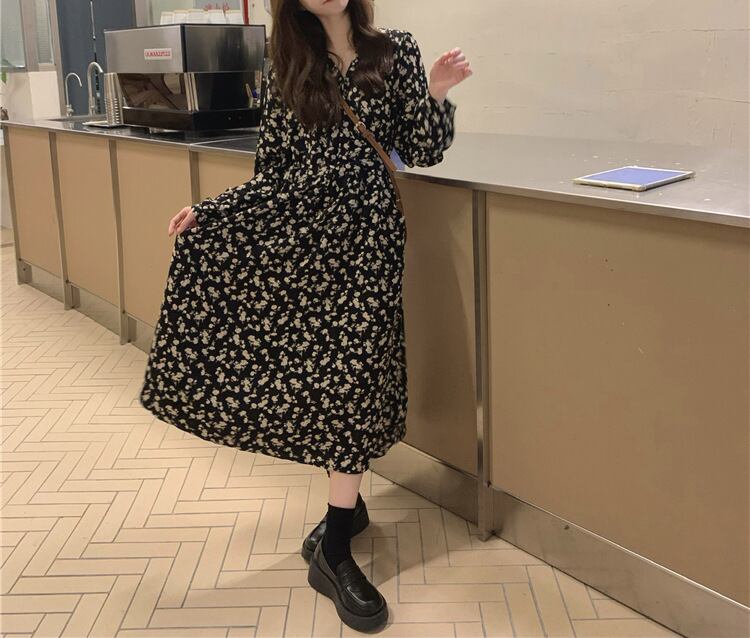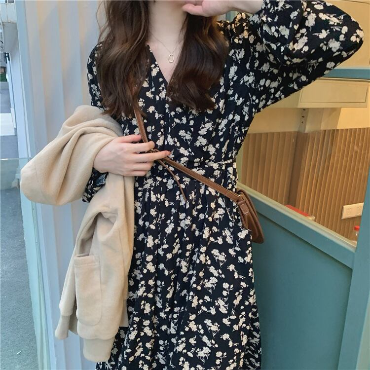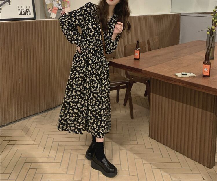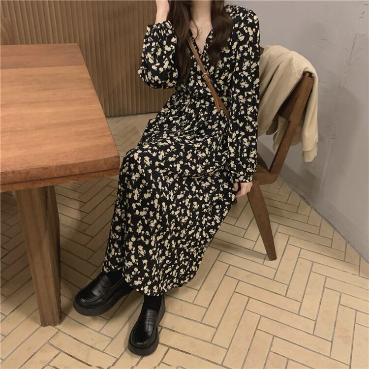花柄Vネックフレンチワンピース