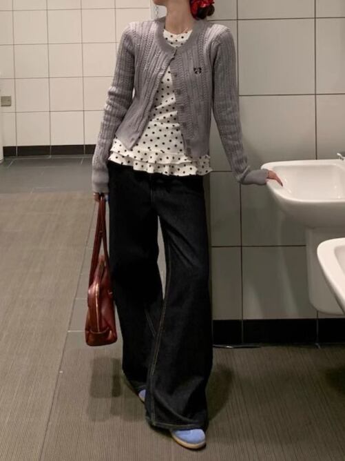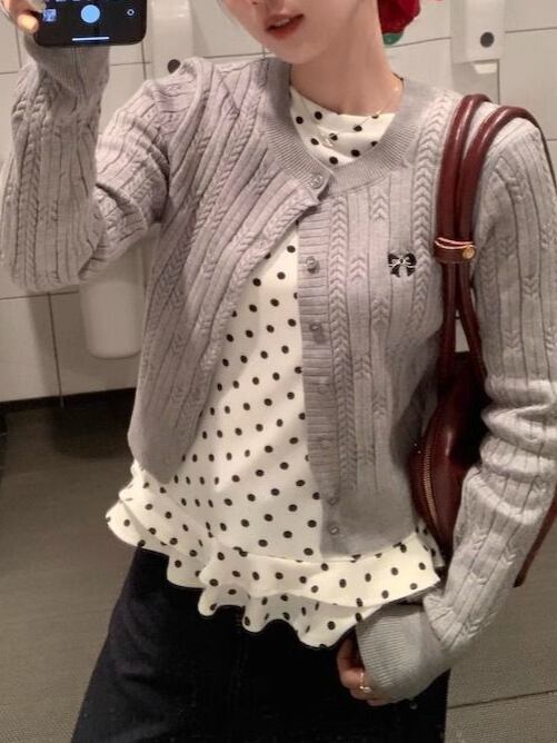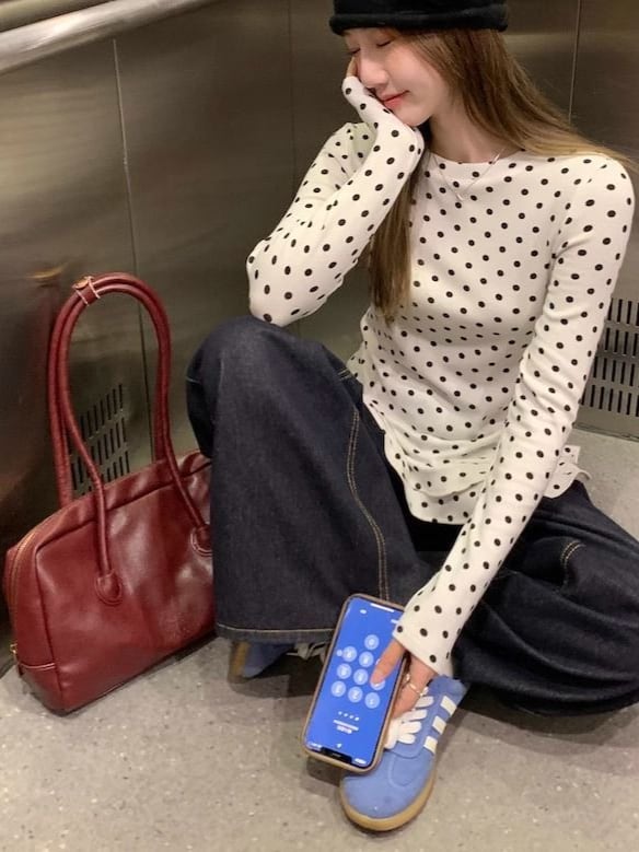 ドット柄フリルブラウス