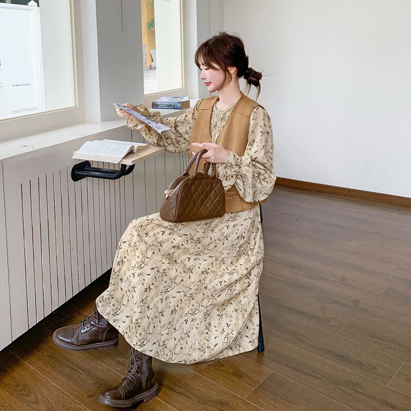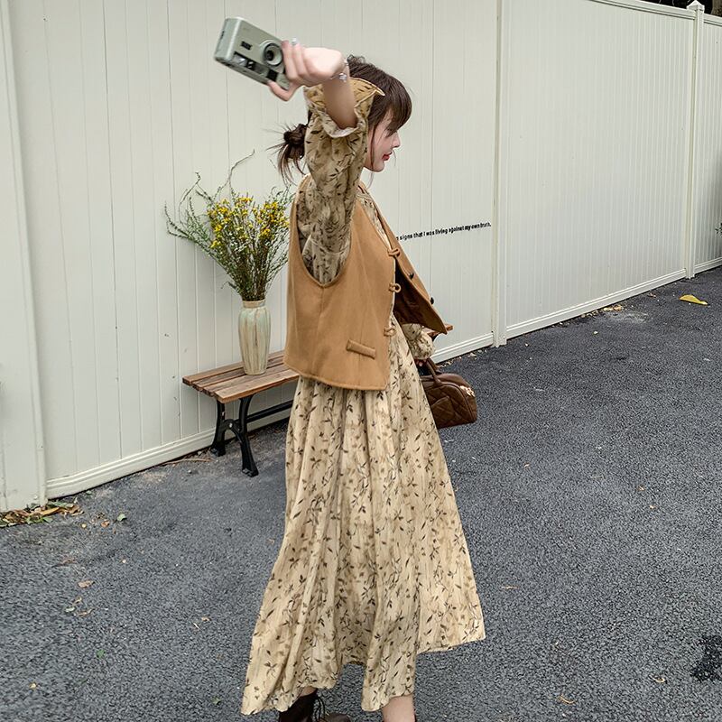 花柄ワンピース×ベストセット_159092
