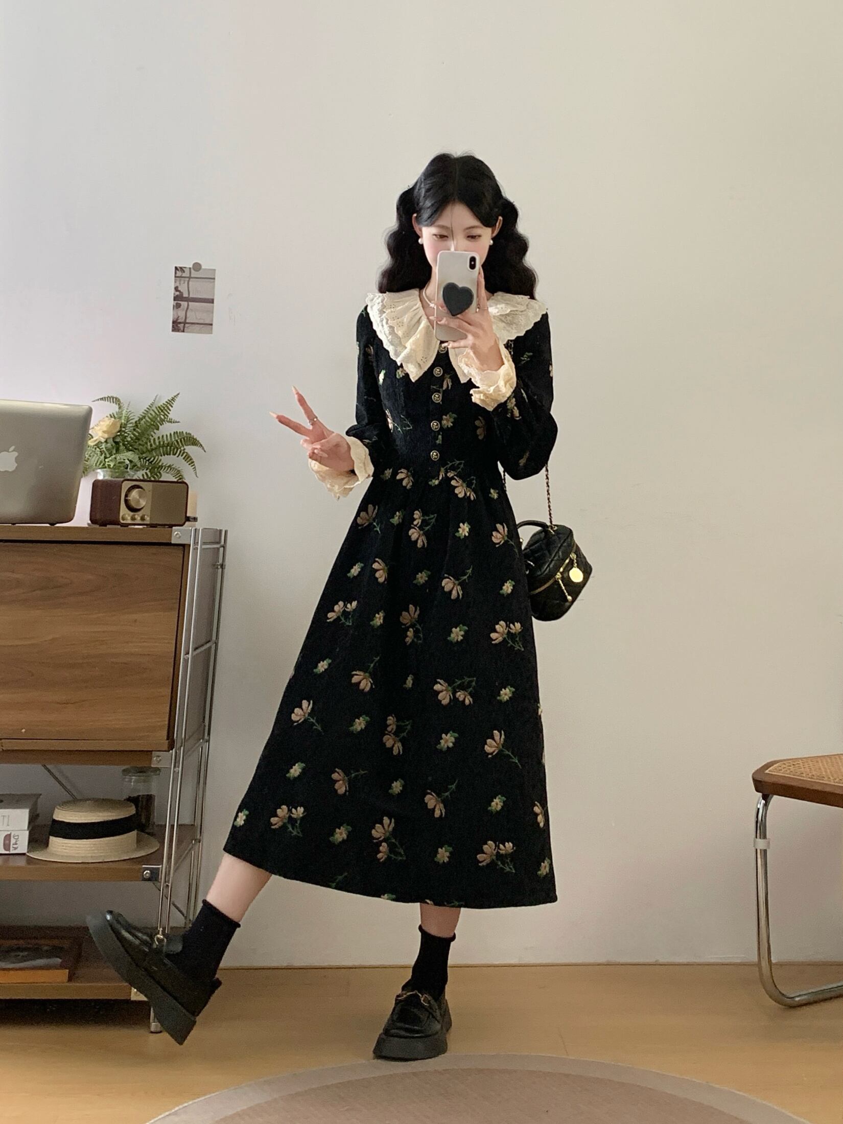 フレンチレトロ花柄ワンピース