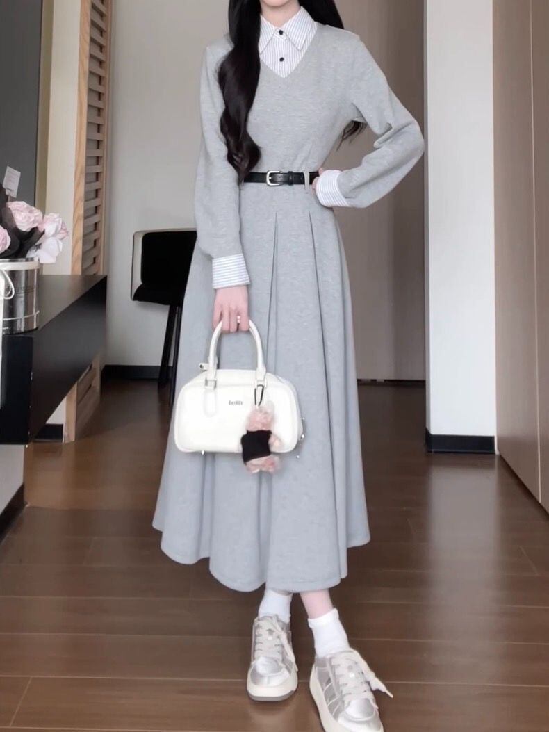 襟付きデザインワンピース