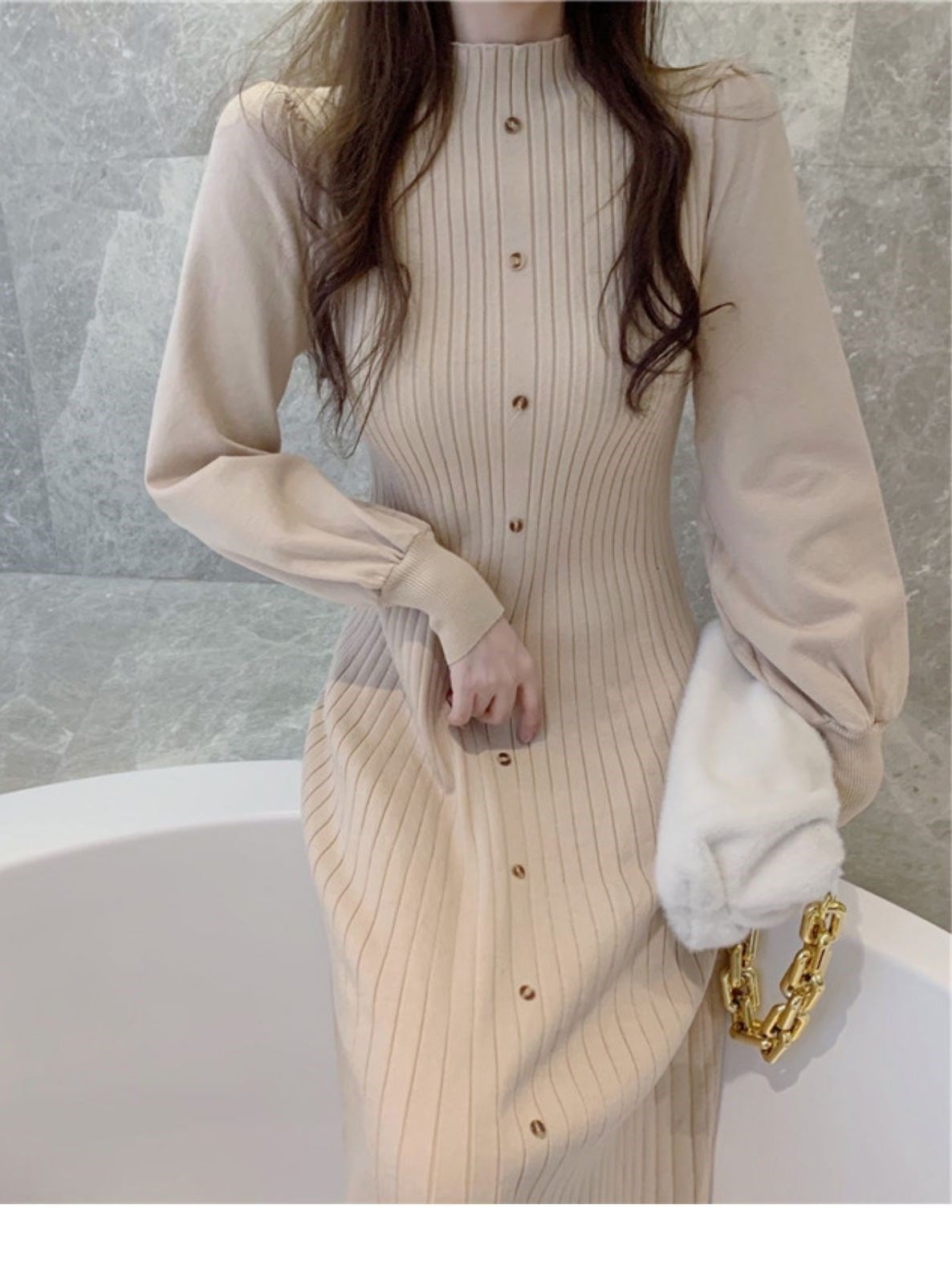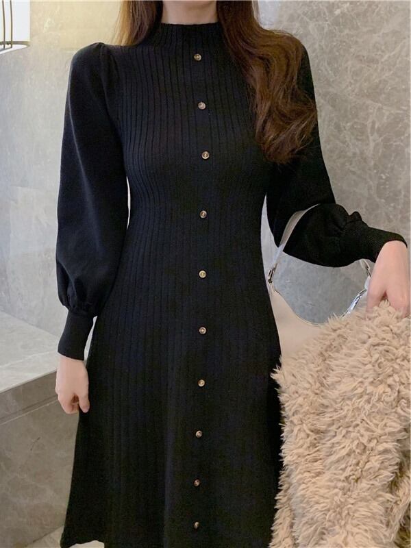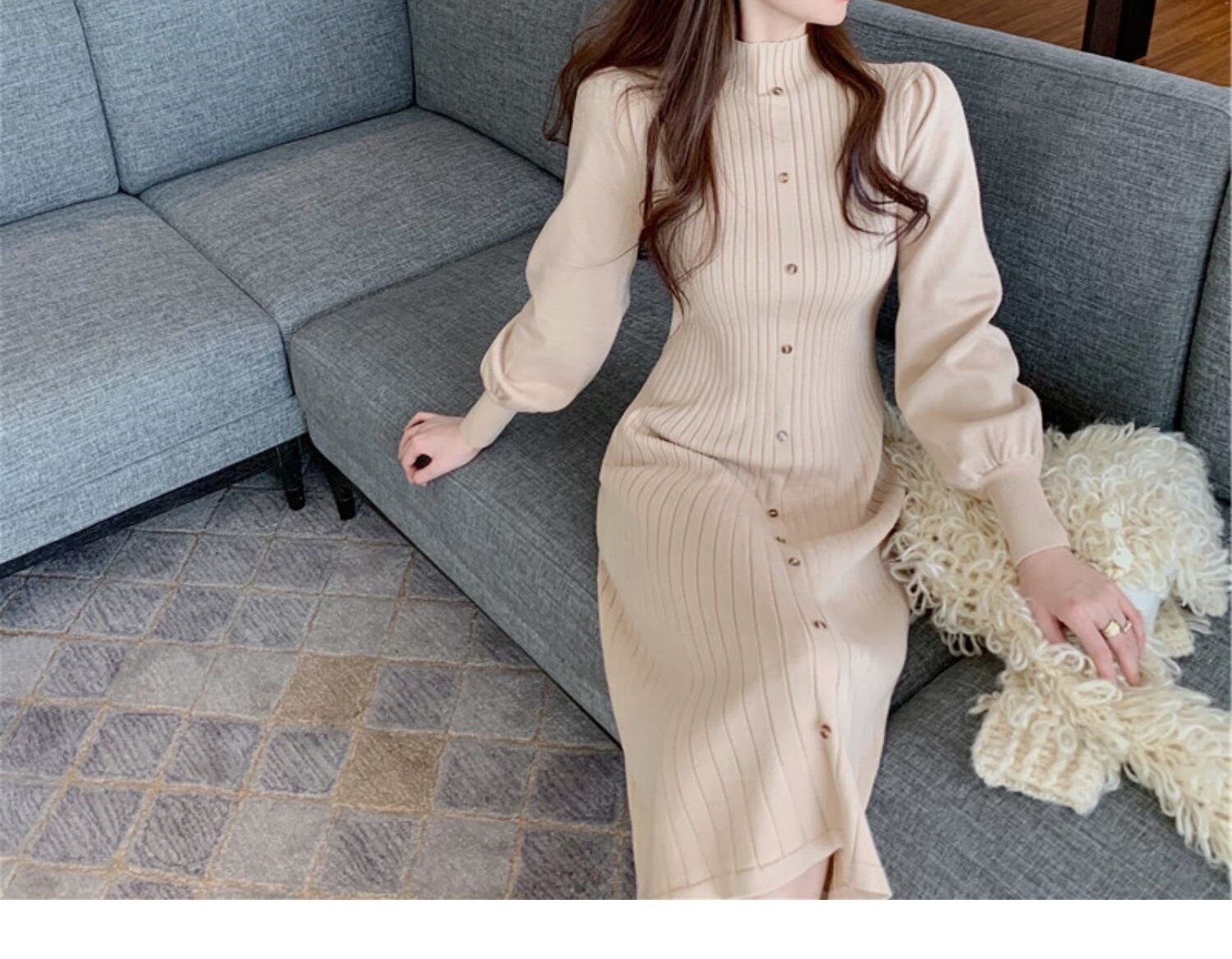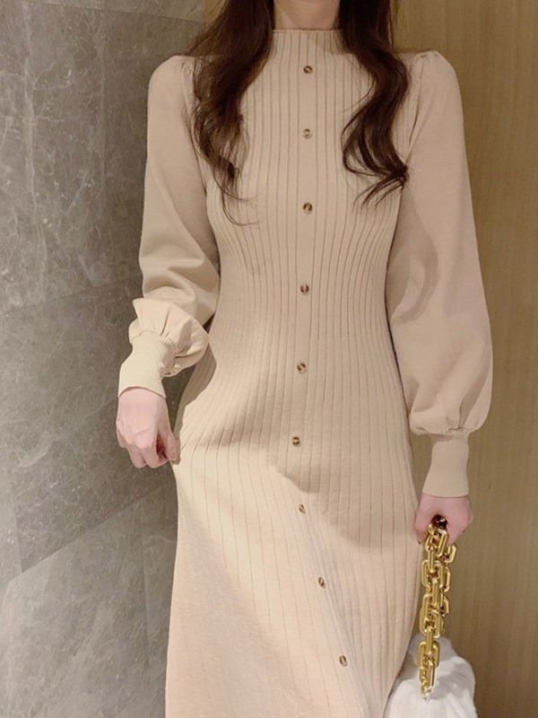 パフスリーブニットワンピース