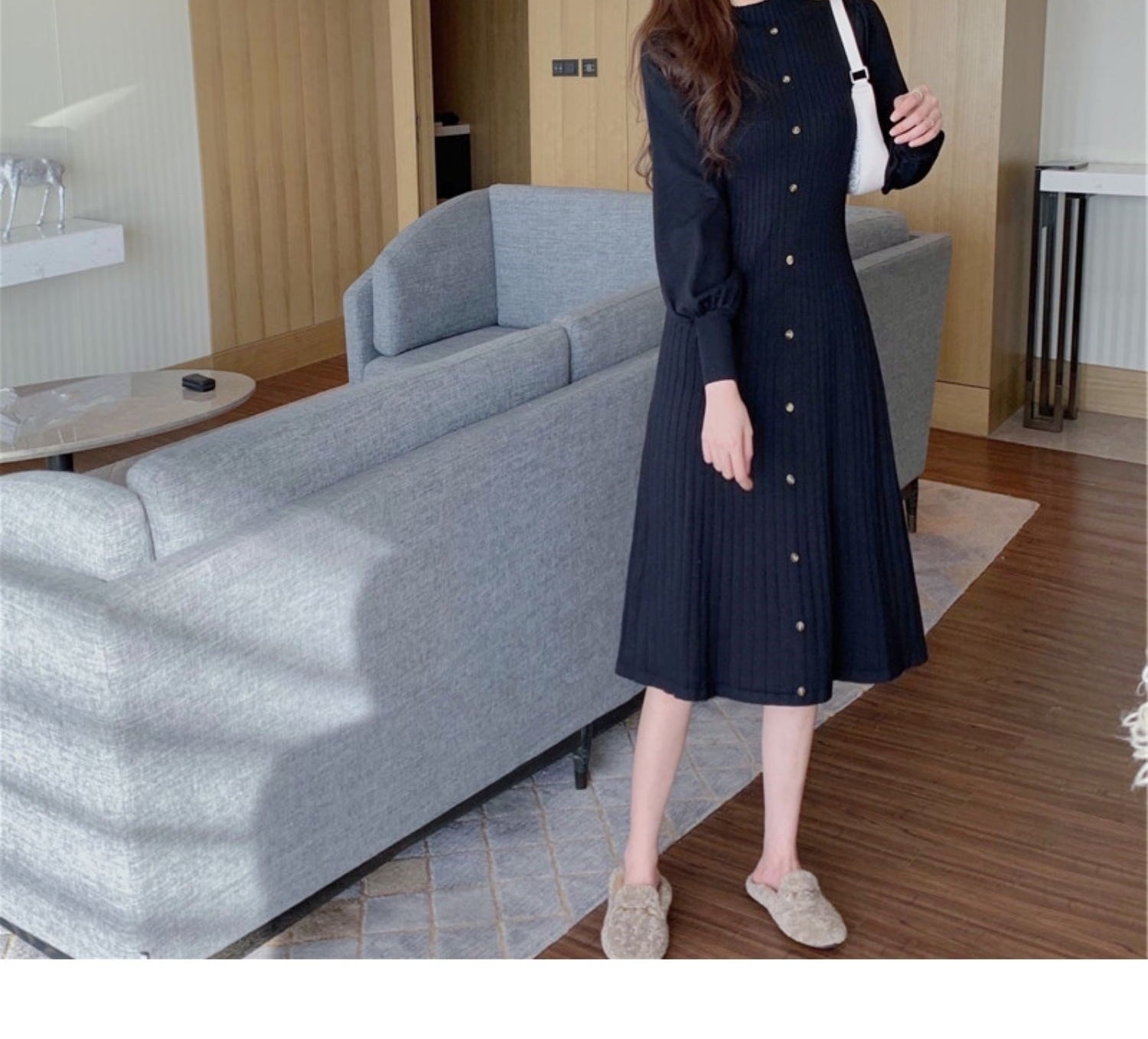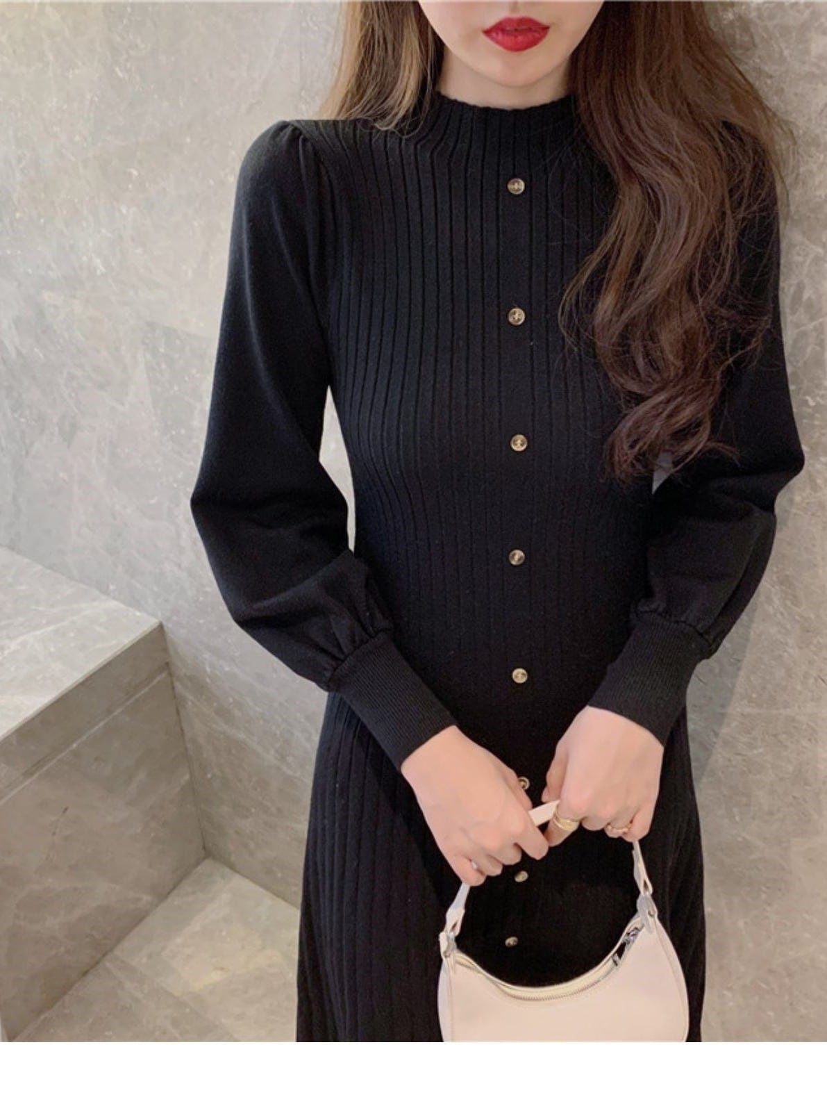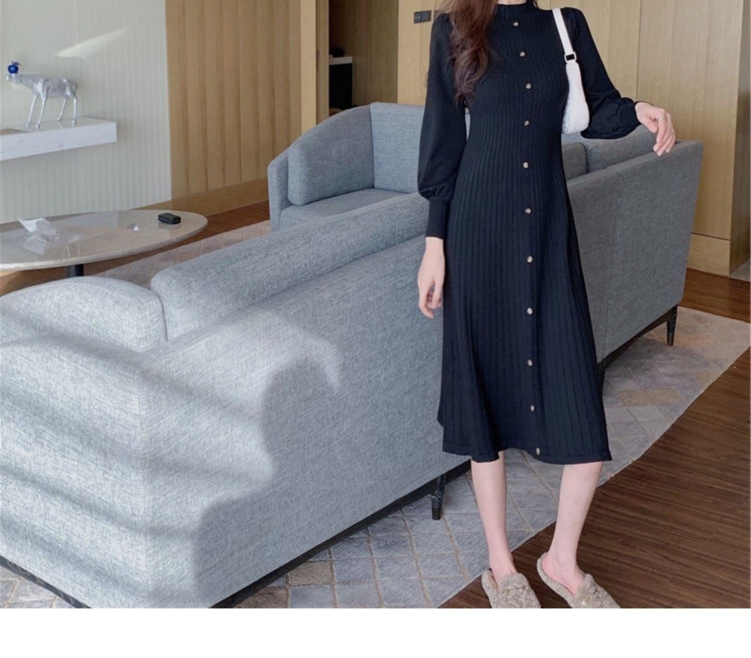 パフスリーブニットワンピース