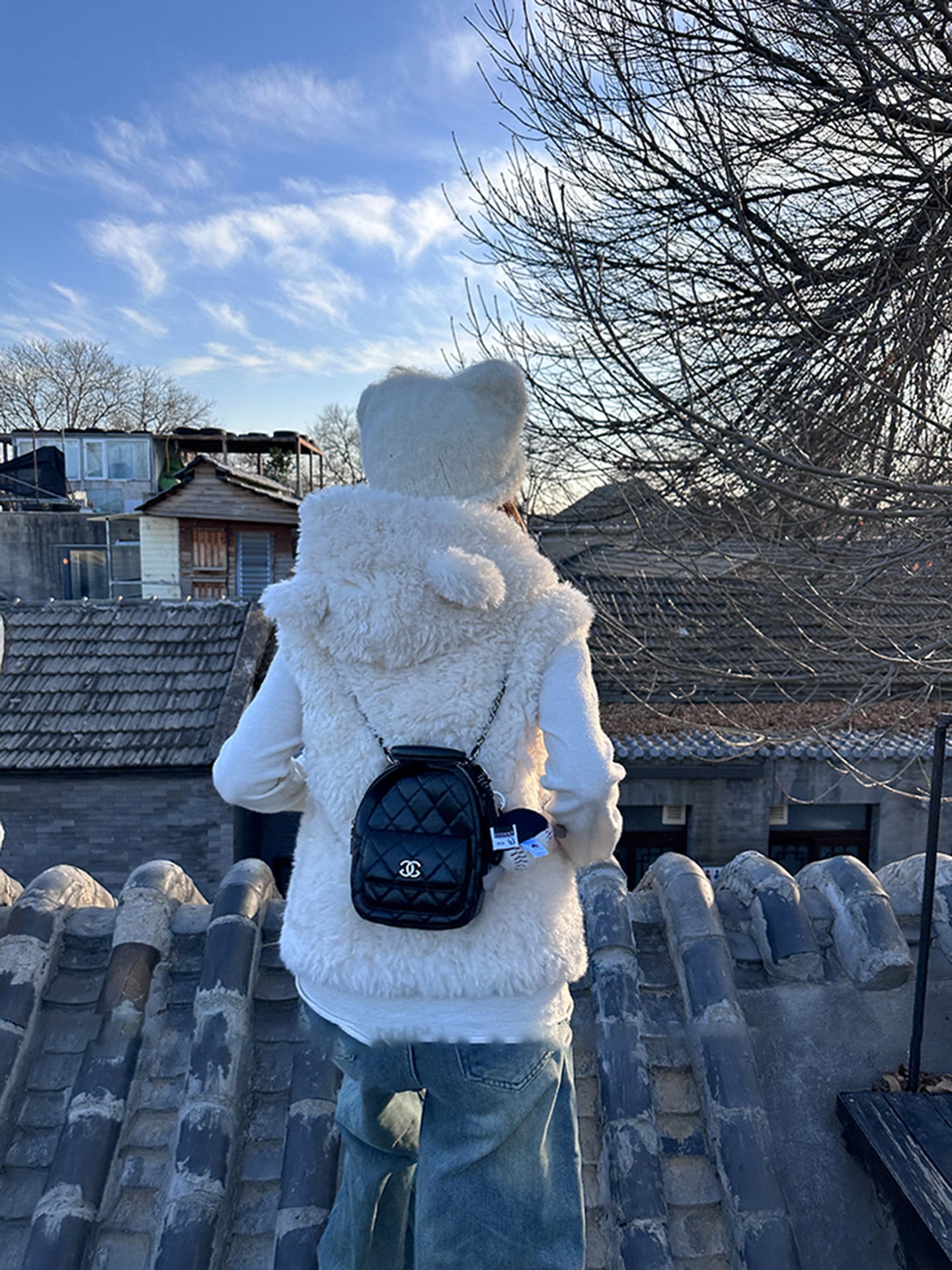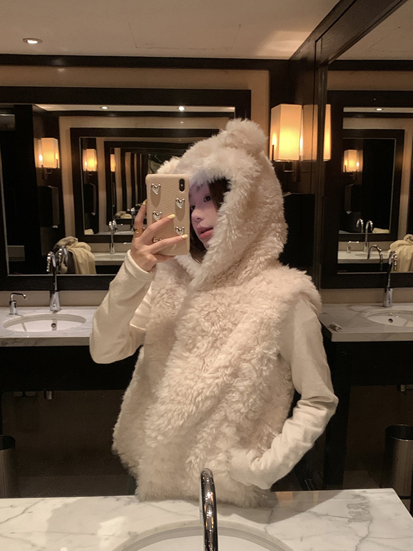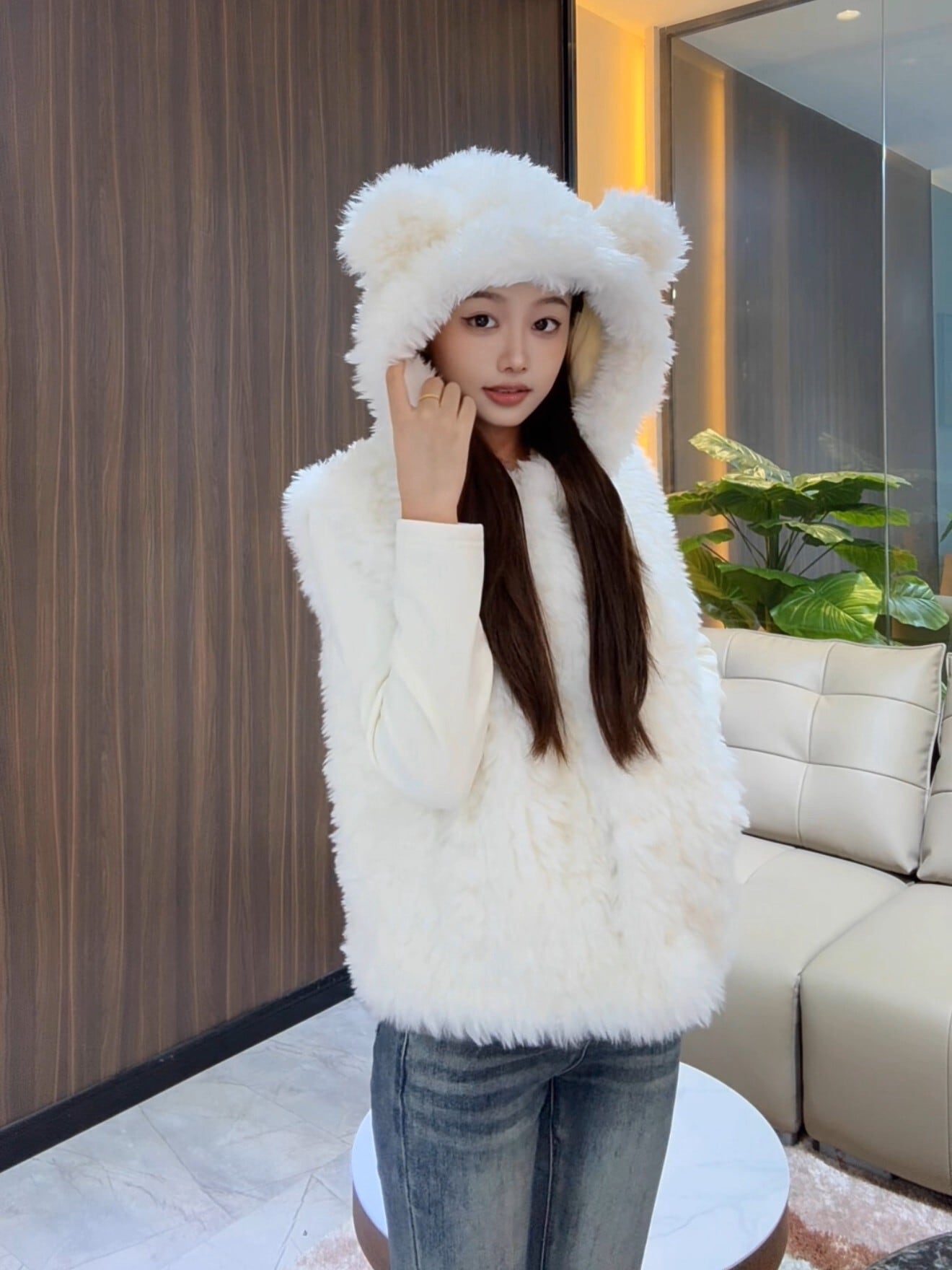 ゆったりシルエット・くま耳フード付きアウター